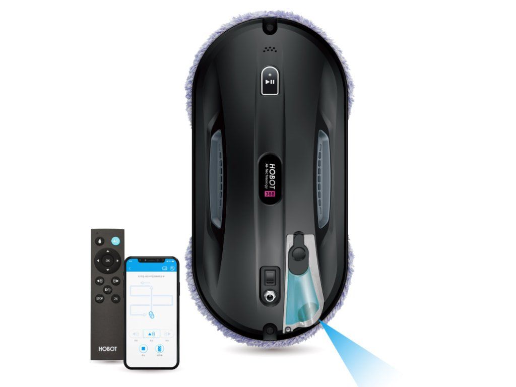HOBOT 388 je elegantný a mimoriadne ľahký (len 895 g) robotický čistič okien štvrtej generácie. Vďaka jedinečnému systému Single-Side nepotrebuje na pohyb žiadne kolieska – pohybuje sa výlučne vďaka silnému prisávaciemu motoru a rotačnému pohybu dvoch utierok. Tento systém zabezpečuje, že na skle nezostávajú žiadne stopy po pohybe.