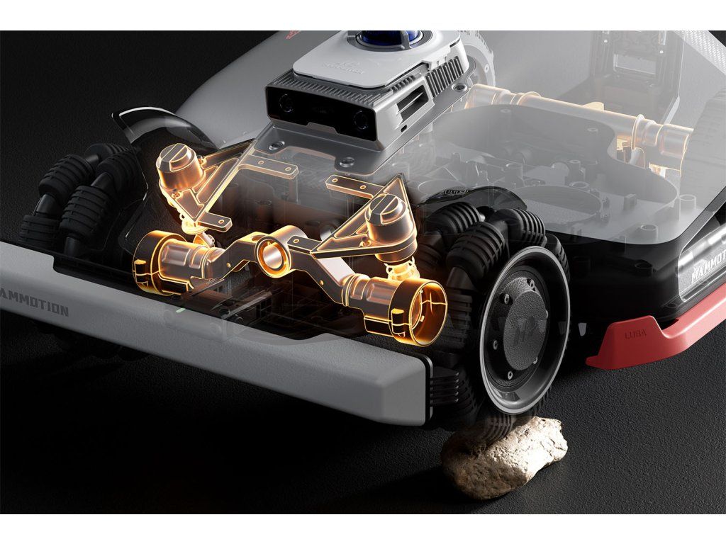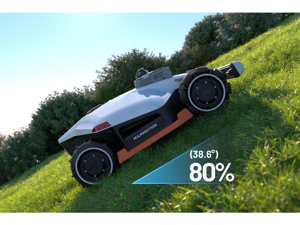 Kosačka si v reálnom čase vytvára 3D mapu záhrady s vysokou hustotou bodov, dokonale rozpoznáva prostredie a umožňuje inteligentné plánovanie trasy kosenia. Vďaka pokročilému pohonu všetkých štyroch kolies (AWD) ľahko prekoná svahy so sklonom až 80 % (38°) a predné odpružené kolesá zvládnu terénne prekážky do výšky 50 mm.