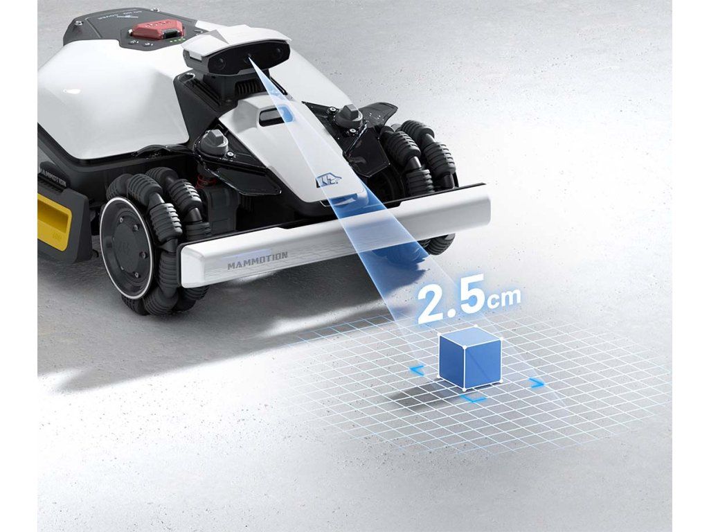 Kosačka si v reálnom čase vytvára 3D mapu záhrady s vysokou hustotou bodov, dokonale rozpoznáva prostredie a umožňuje inteligentné plánovanie trasy. Vďaka pokročilému pohonu všetkých štyroch kolies (AWD) bez problémov prekoná svahy so sklonom až 80 % (38°) a predné odpružené kolesá hladko zvládnu terénne prekážky do výšky 45 mm.