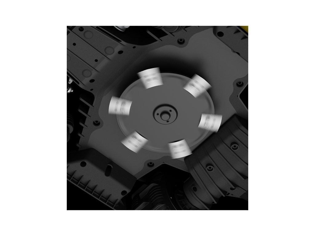 Efektívny rez: Kosačka je vybavená jedným žacím kotúčom so 6 ostrými nožmi so záberom kosenia 200 mm (nastaviteľná výška 20 – 65 mm).